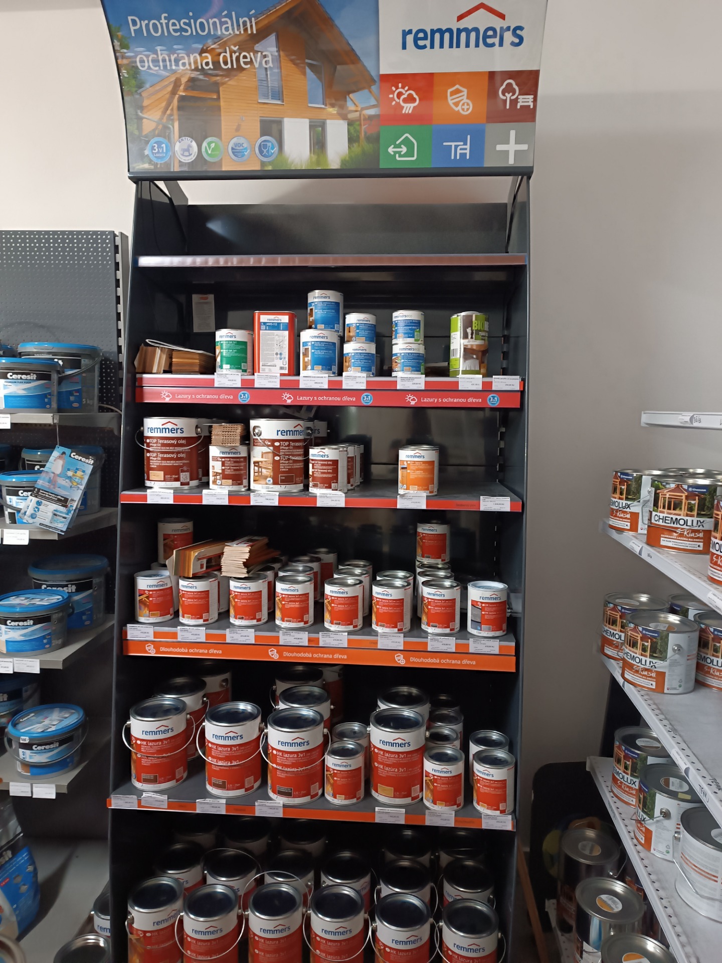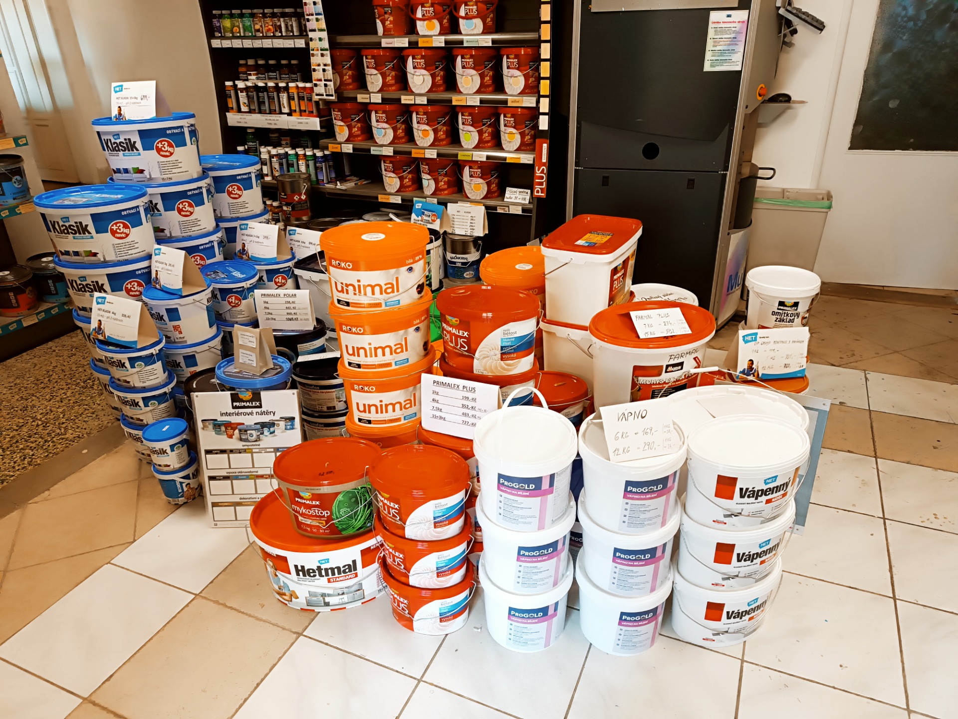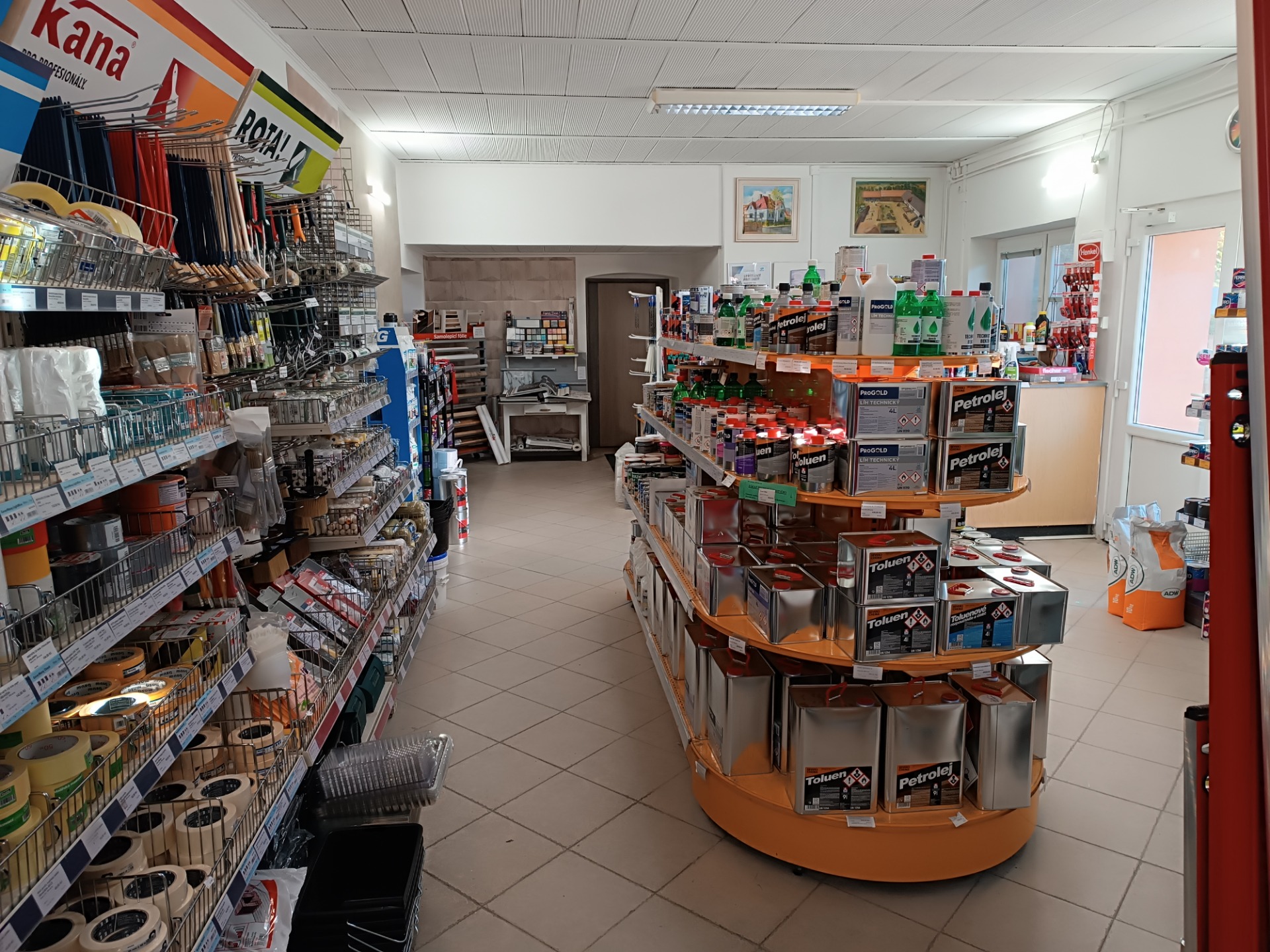 Prodej barev a stavebních materiálů.